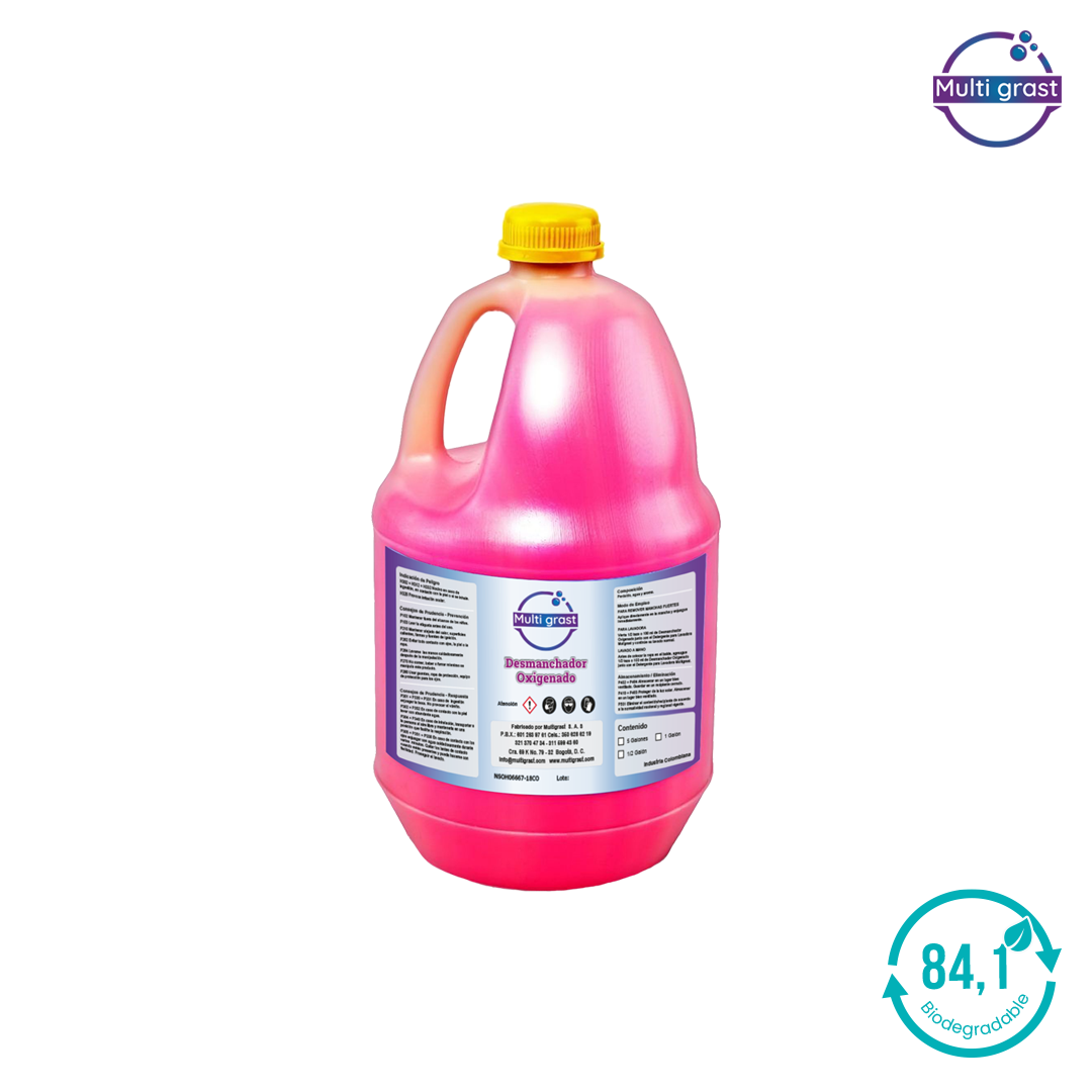 El Desmanchador Oxigenado Multigrast usa la acción del oxígeno activo para eliminar manchas difíciles de ropa blanca y de color sin dañar las fibras. Ideal para manchas de café, vino, sangre, hierba y grasas en prendas delicadas y ropa de trabajo. No blanquea los colores y puede usarse directamente sobre la mancha antes del lavado. Alto rendimiento por uso.